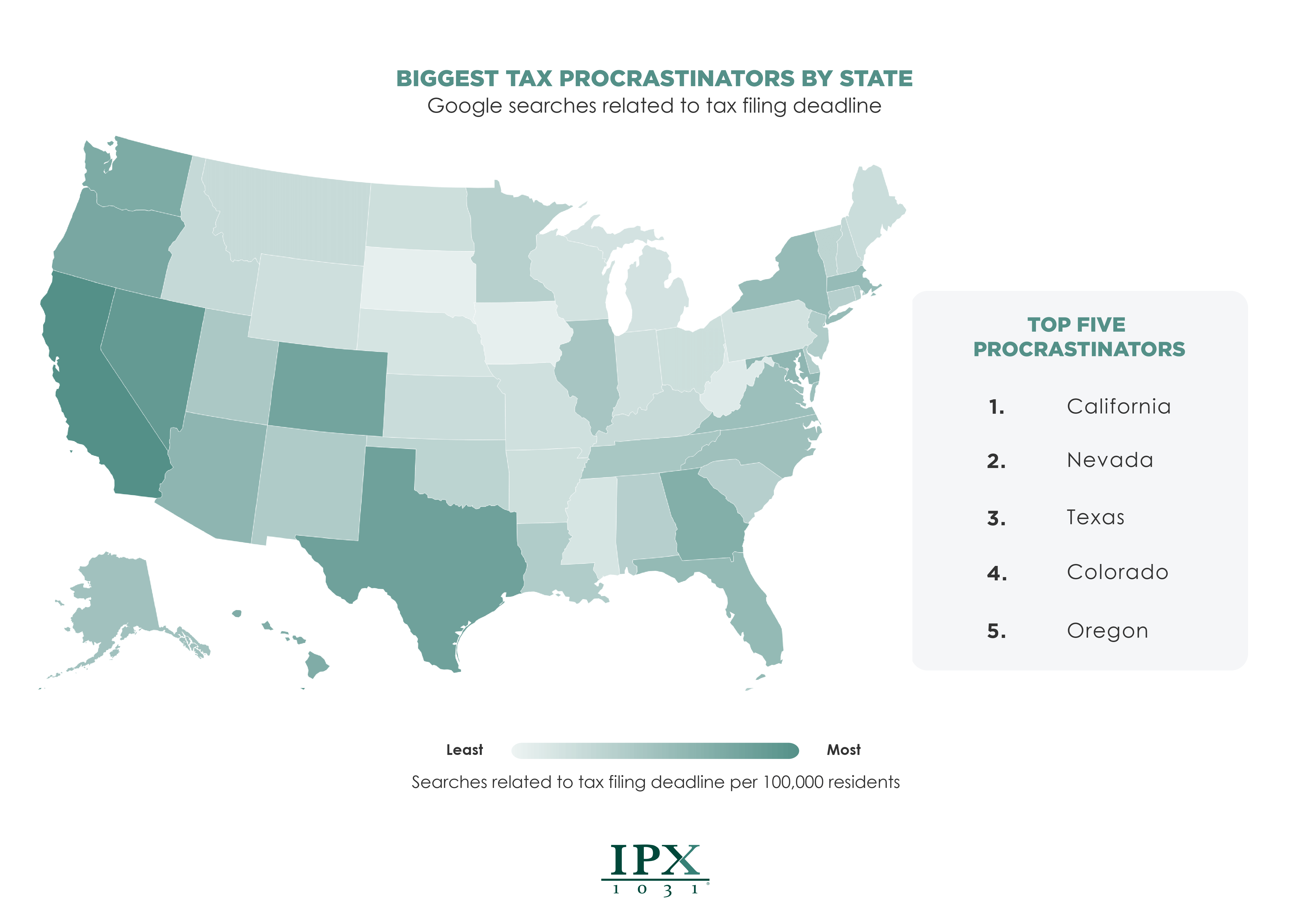 Procrastination isn’t necessarily only common in certain areas of the country. In fact, the most popular time to file taxes is the very last week you can file without an extension, according to the IRS.