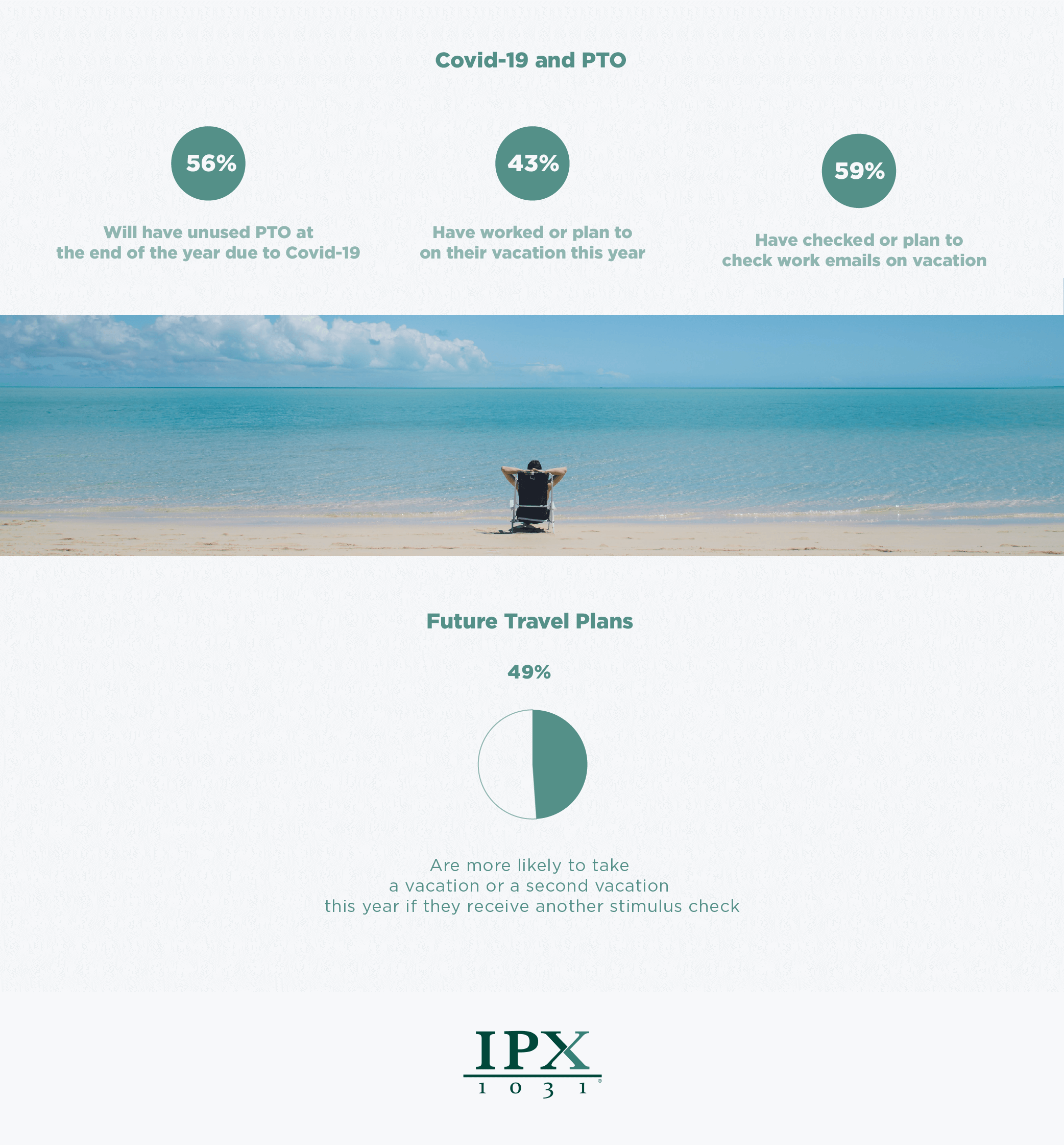 While some are choosing not to fully unplug on vacation, others will be dreaming about a break from work. According to respondents, 56% will leave PTO on the table this year due to Covid-19.